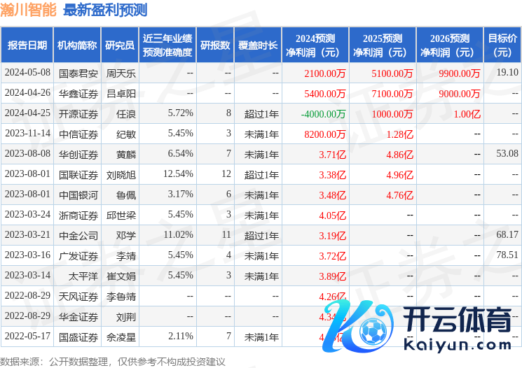 最新盈利预测明细如下: