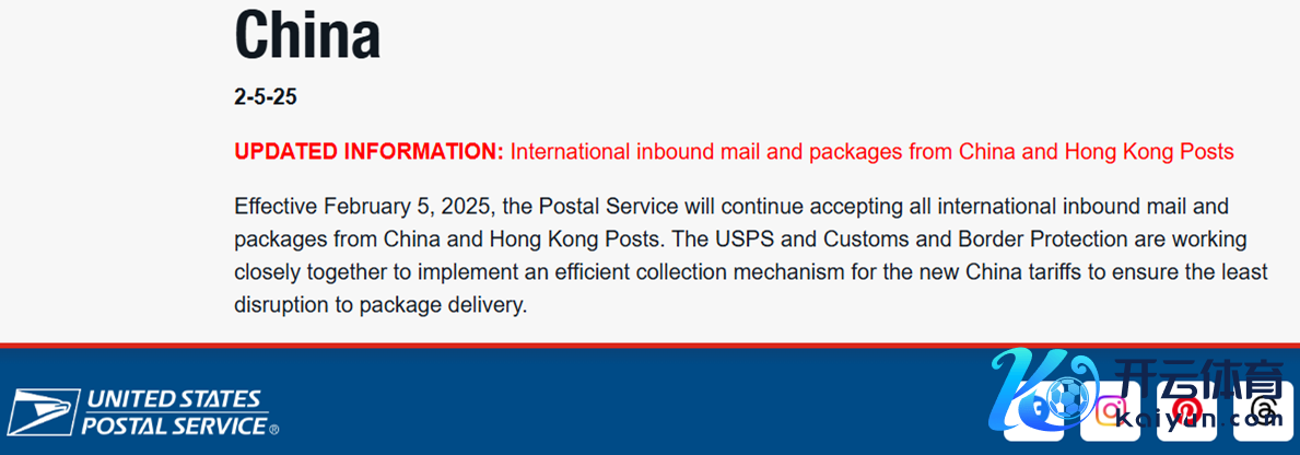 好意思国邮政:即日起停收来自中国内地和中国香港的包裹平件不包括在暂停的界限内云开体育。