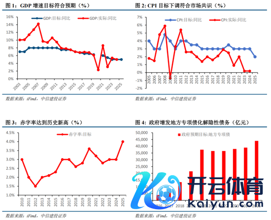 经济增长指标设定基本合乎市集预期。2025年的GDP增长指标、休闲率及城镇新增办事指标复古前年,而CPI指标从约3%下调至近2%,反应对潜在价钱压力的前瞻应付。论述强调增长与办事对防风险、保民生及中恒久发展的关键性,需挖掘经济后劲应付挑战。CPI下调反应地方两会后的市集共鸣,后续政策或聚焦需求提振与供给优化,力促物价良善回升。财政政策力度权臣增强,赤字率升至4%,创历史新高。本年度政府的赤字范围达5.66万亿元,同比增长1.6万亿元,其中新增专项债4.4万亿元,同比增长0.5万亿元,明确用于地盘收储、存量房收购及债务化解。此外,新增1.8万亿元相称国债,其中1.3万亿元投向“两重两新”,0.5万亿元补充银行本钱金。本年新增政府债务较前年多2.9万亿元,加向前年底批复的2万亿元化债专项债,财政支柱力度谋略比前年加多约5万亿元,暴露出积极财政的强力托底意图。货币政策走向已毕宽松。货币政策延续宽松基调,提到要“应时降准降息,保抓流动性充裕”;初度明确“更放浪度促进楼市股市健康发展”,较12月中央政事局会议提议的“稳住楼市股市”的提法更积极,突显政策对钞票市集强健的高度怜爱。